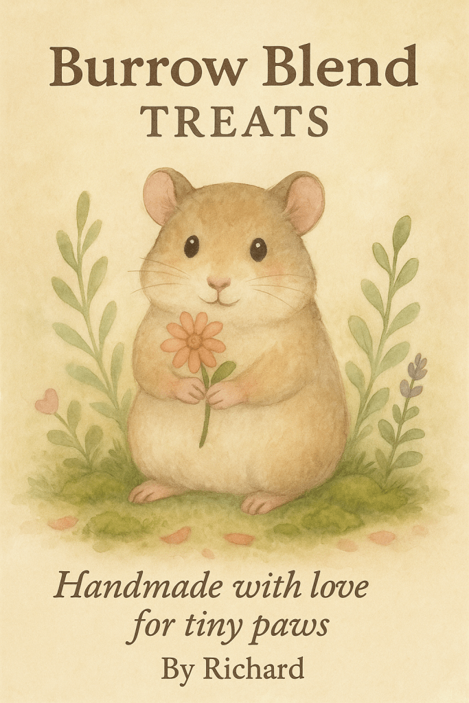 Burrow Blends began as a quiet act of care. Living with chronic fatigue in a small apartment, I longed for something meaningful I could give—something slow and handmade, something rooted in love. So I created a tiny sanctuary for a rescued dwarf hamster, and from that place of gentleness came these little treats. Each one is made with real, simple ingredients: ground timothy hay, oat flour, fruit, flowers, and patience. No factories, no fillers—just small, joyful batches, shaped by hand and baked with love. These are not just snacks, but offerings—for tiny paws and the people who love them.